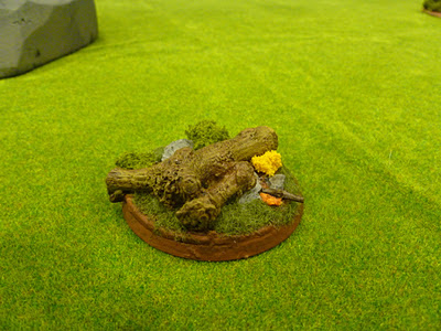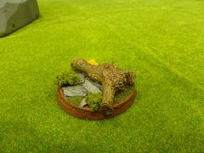 Here are a couple of pictures of the finished base; painted and with static grass and some clump foliage for bushes. The figure can be moved between this base for playing games and the Eagle’s Aerie display base that I have built – more on that later.