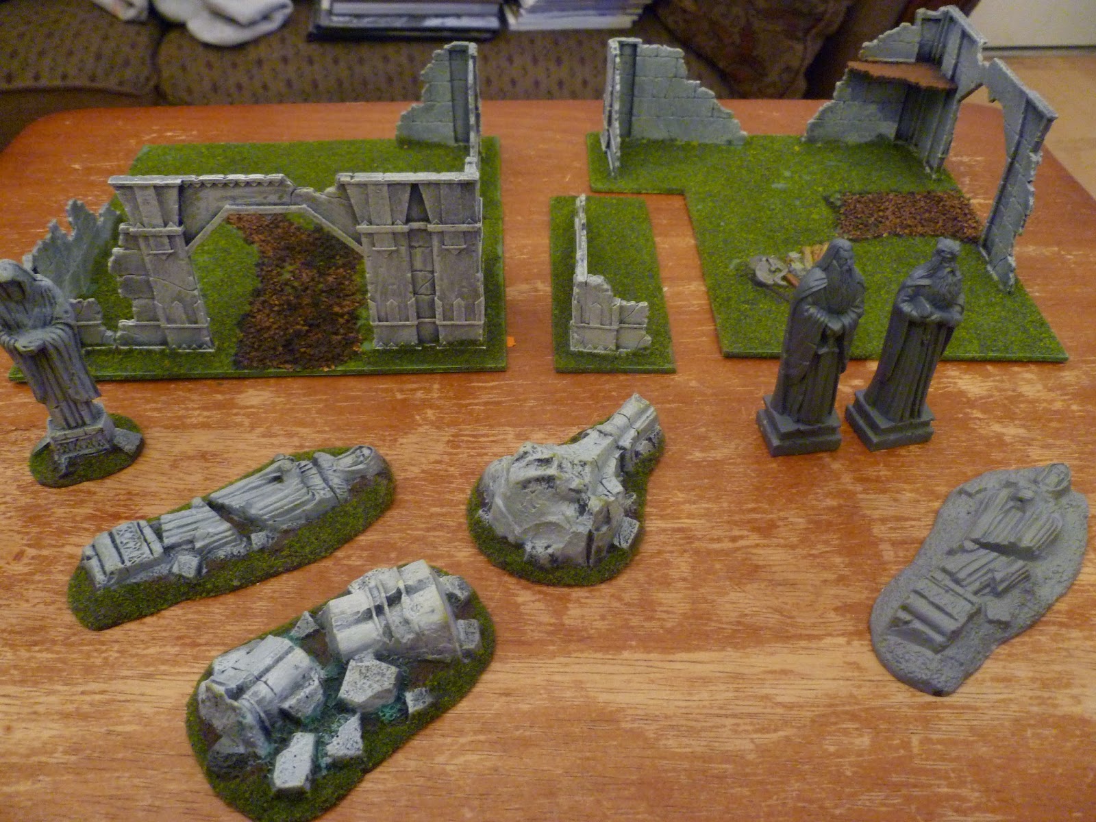 Okay so the first set of pieces for this project I did from scratch. If you count using plastic kits as “from scratch” I guess. I know there are some terrain purists out there who definitely DO NOT. However some of the plastic kits available now are just too cool not to use. But never fear my purist friends I have made my fair share of truly scratch-built terrain (see here for my scratch building “street-cred” =P) and I am planning what I hope will be a super-cool scratch-built center piece for this table.