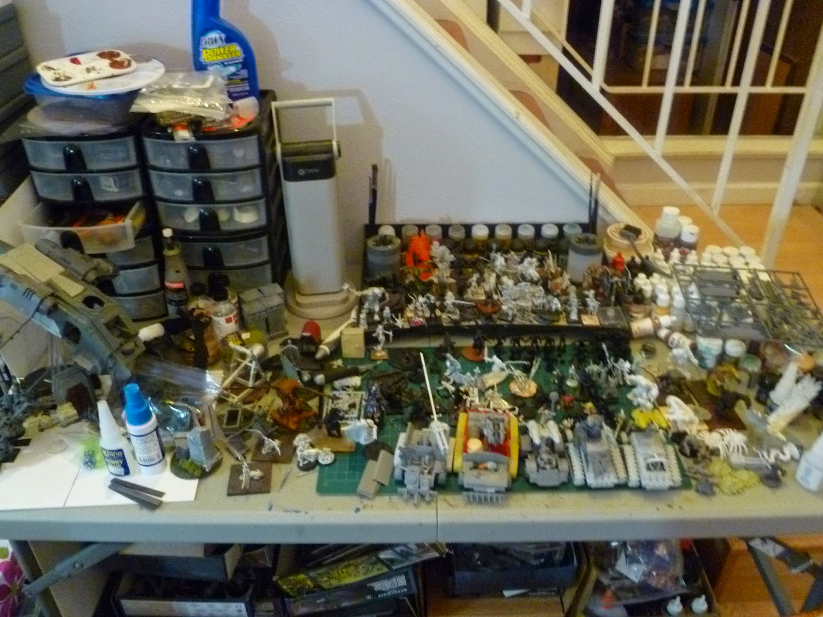 It is time again for the now weekly Paint Table Saturday update. This week I made some really good progress on my Warhammer 40K Ork Vehicles for Orctober Fest. I am done modeling/converting the five Wartrakks and Buggies and they are ready for primer. You can see them there on the front edge of the hobby table.