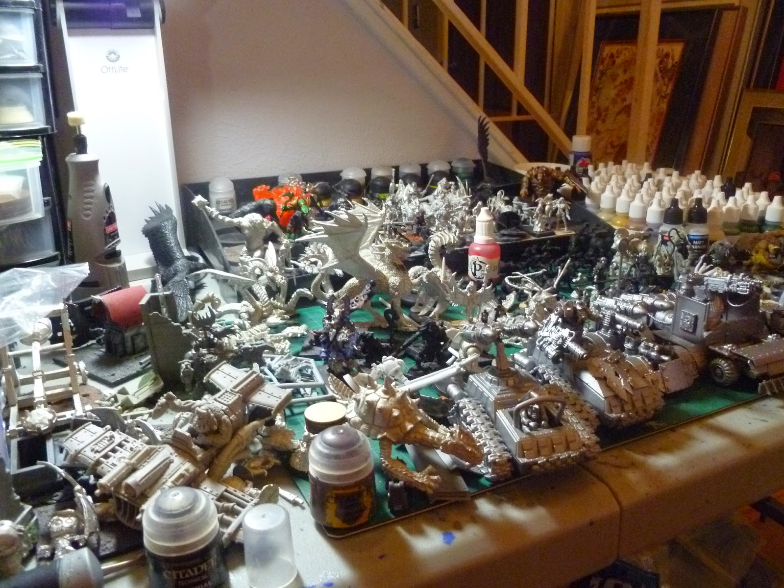Here are the models that I have moved over to the auxillary tray table to work on paintng to start with.